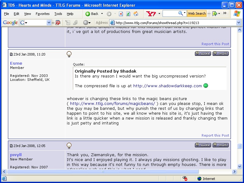 - At the VERY beginning, I was such a beginner webdesigner that I didn't even realize it was a bad idea to directly link to files hosted on another website. I had linked my favourite missions from Thief-TheCircle! Dan emailed me and yelled that it was a big no-no, so I fixed that real fast.